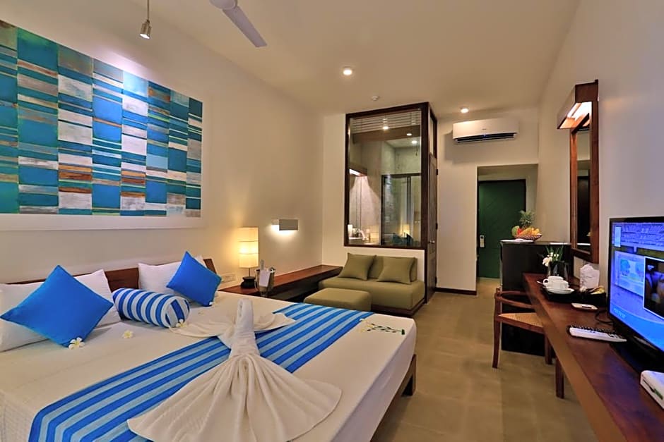 Air-conditioned room features a balcony and is furnished with natural palm wood flooring. Includes a flat-screen cable TV, IP Phone and safe. Private bathroom comes with a bathtub.